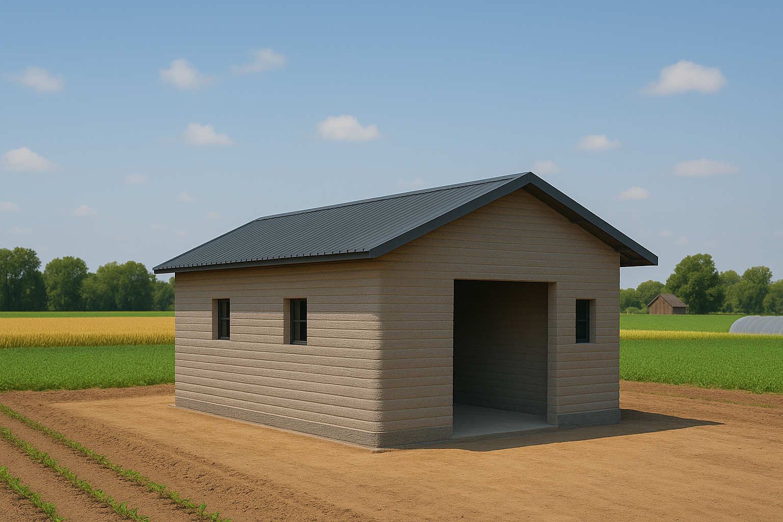 Roof integration is executed through printed or cast slabs with the overall structural system