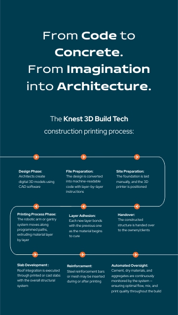 K-nest 3D Build Tech reimagined how structures are built; layer by layer, with robotic precision and limitless creativity. From blueprint to built form, our technology transforms digital designs into real, ready-to-live spaces faster, stronger, and smarter than ever before.